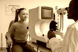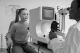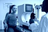 Doctor checking vision of a girl by using medical equipment