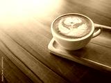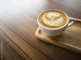 Coffee cup wooden tray on table Latte art Cafe Restaurant