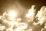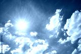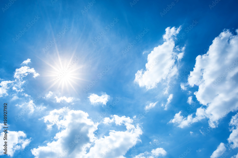 Sommer Hintergrund, blauer Himmel mit Sonne und Wolken