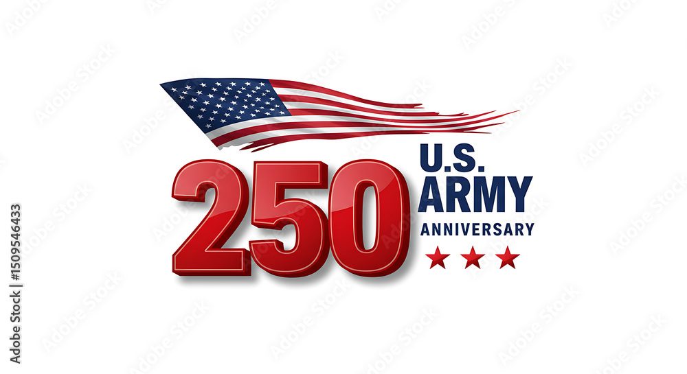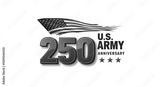 U.S. Army 250th Anniversary Celebration Logo with American Flag and Red 3D Numbers