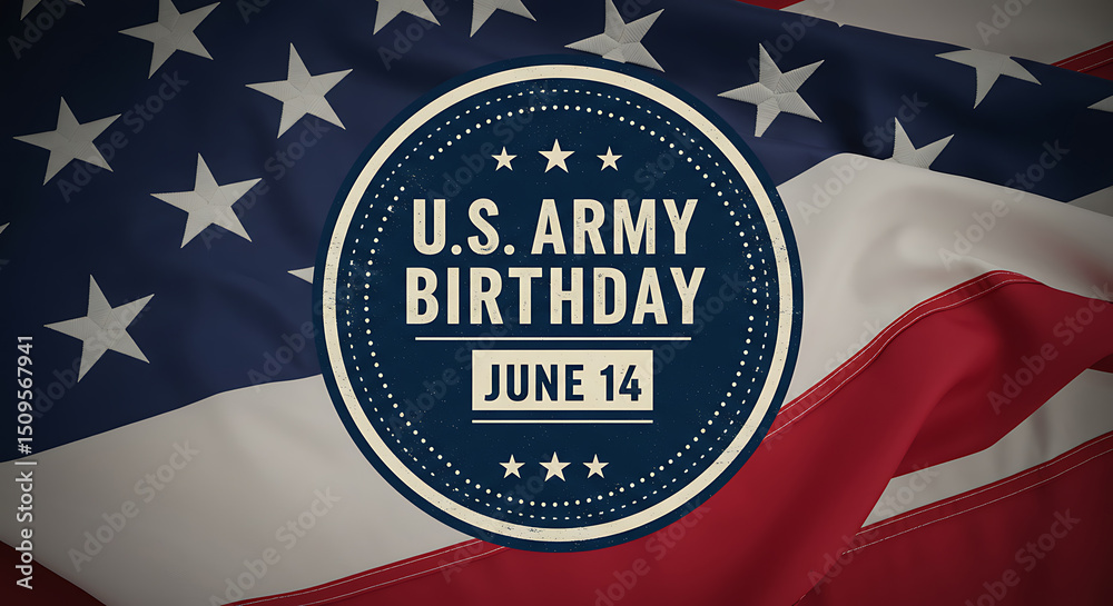 U.S. Army Birthday Emblem with American Flag Background Illustration for June 14 Commemoration