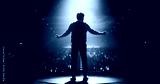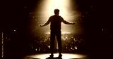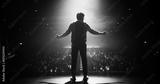 Anonymous Man Standing Under a Spotlight on Stage in Front of a Sold-Out Audience. Motivational Speaker or a Stand Up Comedian Making an Unforgettable Performance