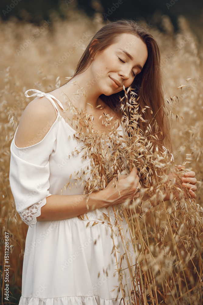Stylish woman spending time in a summer field