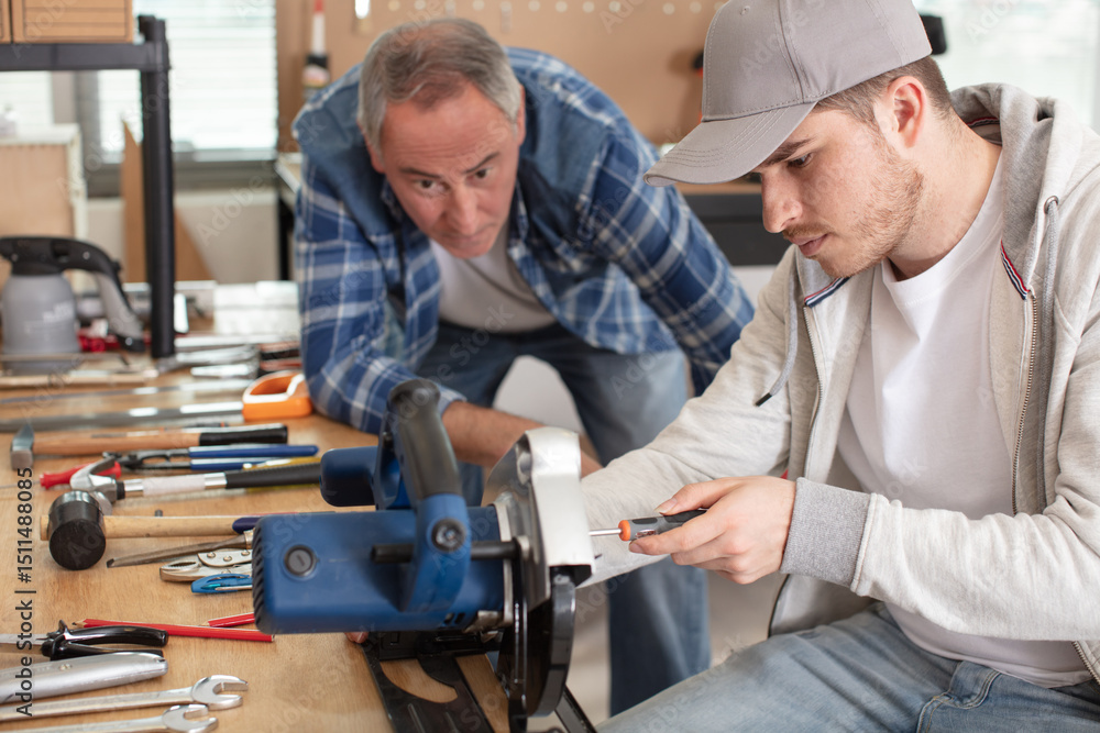 young apprentice in vocational training working with teacher