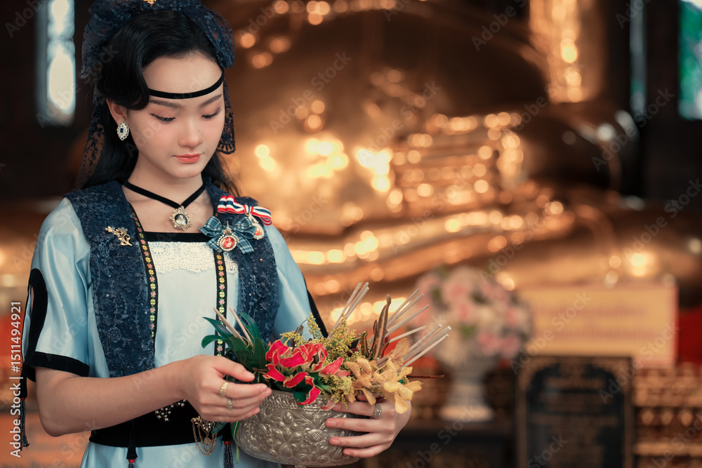Traditional thai dress ceremony thailand portrait cultural setting close-up beauty in tradition