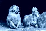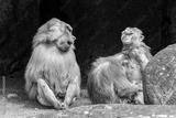 Hamadryas baboon, papio hamadryas, sitting together and grooming each other.