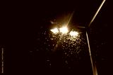 Midges Fly into Light, Clouds of Insects Swirl Around Lantern at Night, Summer Insects, Trap Concept