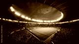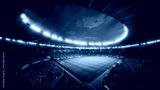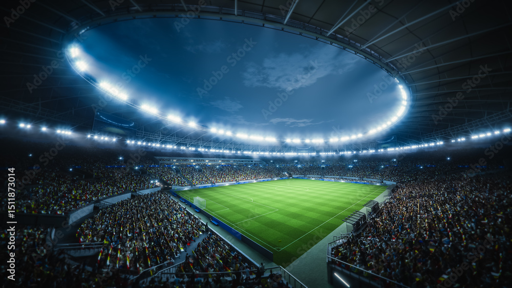 Night Soccer Match in a Massive Stadium Filled With Spectators. Arena Is Packed With Fans Surrounding the Green Pitch, Ready for a Major Sport Event