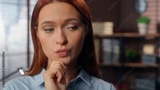 Business woman thinking businesswoman pensive hesitate unsure doubtful solution think female girl manager in office employer pondering decide working thoughtful project startup idea looking for answer
