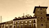 Under a dawn sky, ancient brick facades whisper tales to cranes, echoing La Tomatina's lively chaos and Semana Santa processions