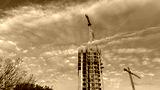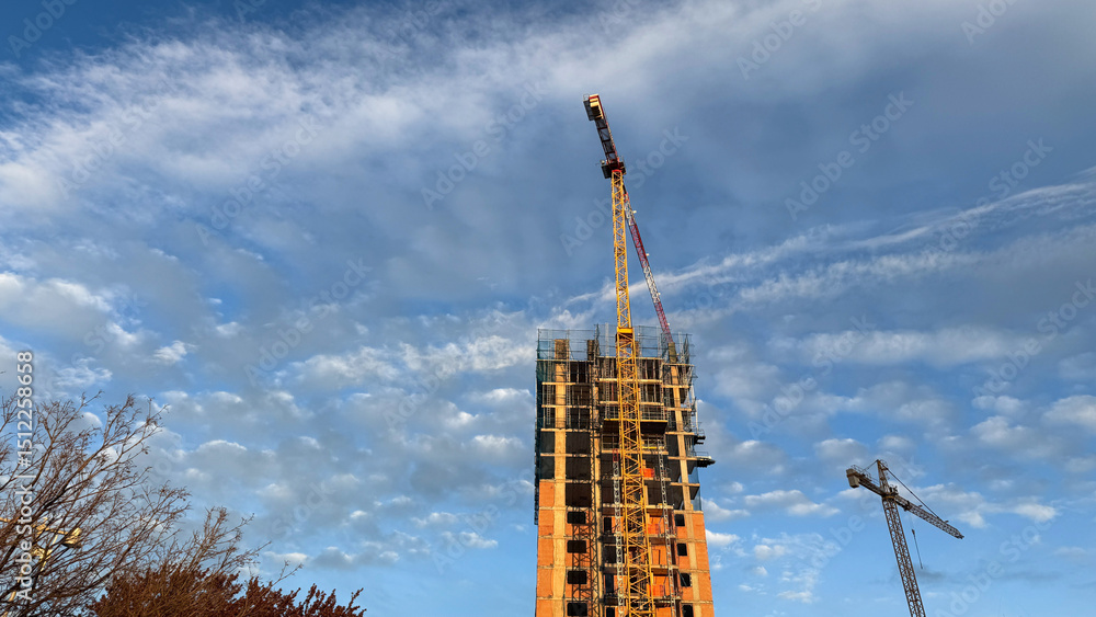 Tower crane dances against the sky, crafting future urban silhouettes; celebrate Skyscraper Day and the marvel of construction