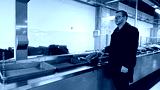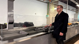 A contemplative Caucasian man monitors his luggage at the conveyor, evoking Airport Day's organized chaos and modern nomadism
