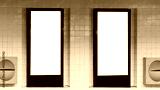 Twin blank canvases await inspiration on tiled walls, echoing urban transit tales and World Creativity Day aspirations
