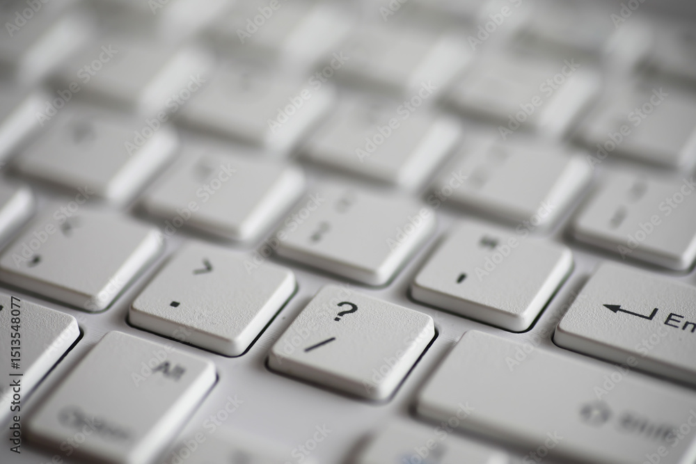 Close-Up of White Keyboard with Focus on Question Mark Key for Technology and Computing Concepts