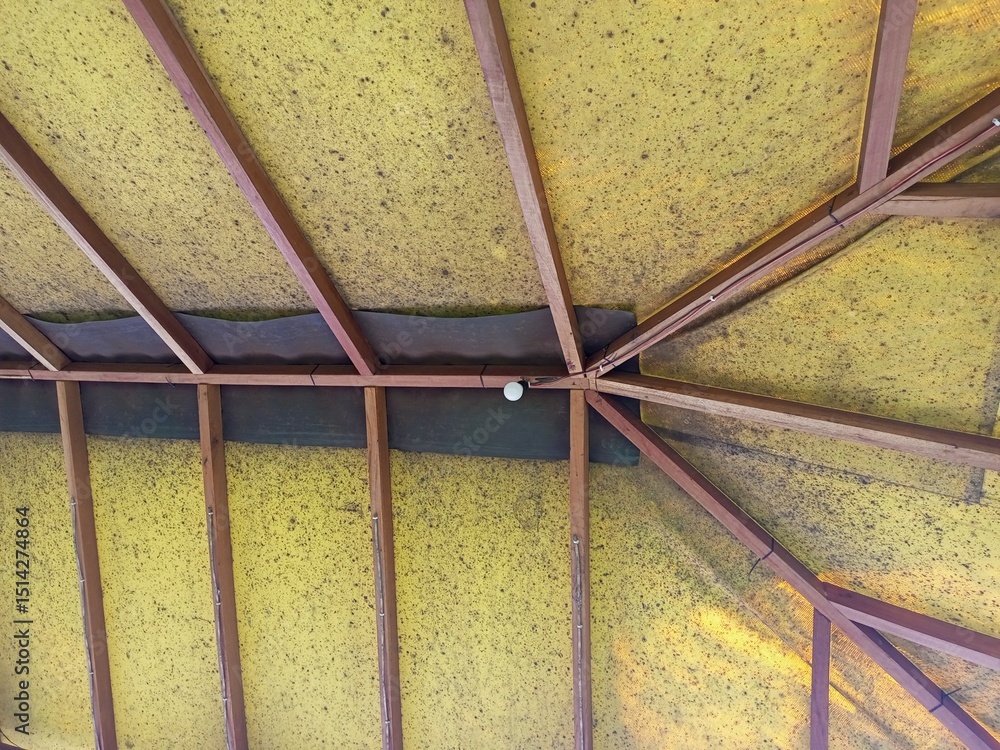 Abstract Yellow Ceiling with Exposed Wooden Beams