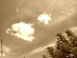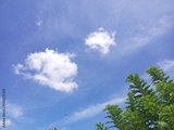 Clear Blue Sky with Fluffy Clouds and Green Foliage