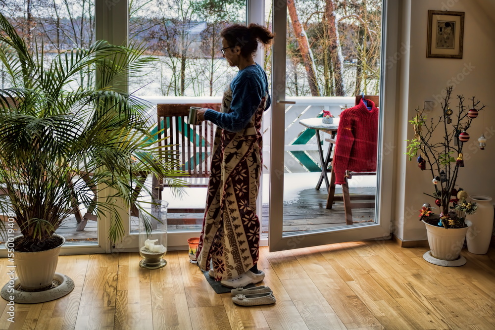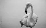 Detailed portrait of an African Flamingo in vivid pink tones set against a blue background. Perfect for wildlife, exotic birds, nature, and colorful design projects.