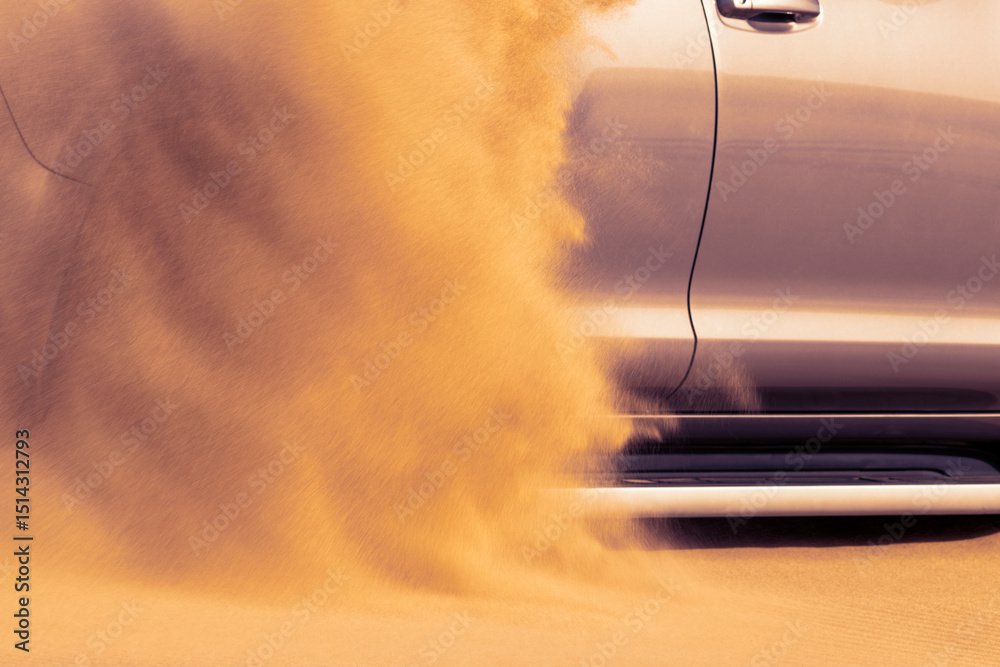 Close-up of a golden car stuck in the deep sand of the Namib Desert. A dramatic and adventurous scene perfect for travel, off-road, and automotive-themed creative projects.