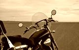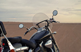 A motorcycle stands still beneath a vibrant sunset, symbolizing freedom, adventure, and the thrill of exploring new roads ahead.