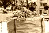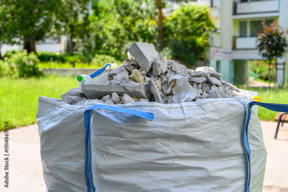 śmieci po remoncie mieszkania w worku, gotowe do odbioru