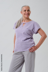 Woman in casual clothes posing in photo studio