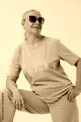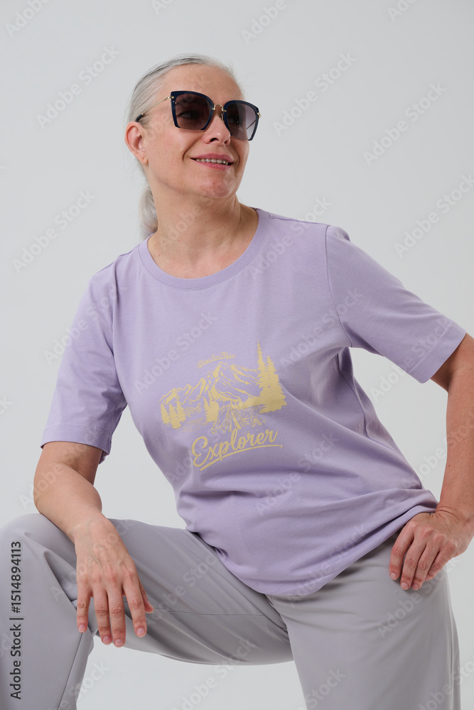 Woman in casual clothes posing in photo studio