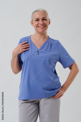 Woman in casual clothes posing in photo studio