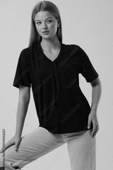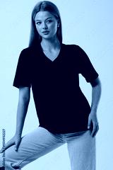 Girl model in casual clothes on a gray background posing in the studio