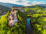 Orava castle or oravsky hrad in Oravsky Podzamok in Slovakia. Medieval castleon high cliff by the Orava river.