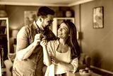 A couple is standing together, happily showing the key to their new home. The image captures excitement, achievement, and a fresh start as they celebrate homeownership in a joyful moment.