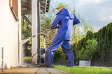 Power Washing a House Exterior During Daylight in a Residential Neighborhood