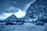 Khafre and Khufu Pyramids of in Giza pyramid complex, Cairo, Egypt.