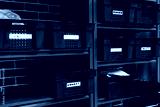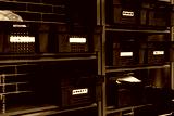 Storage bins organized on metal shelving in a neat indoor space for efficient management of supplies
