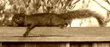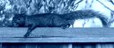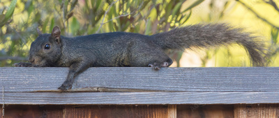 Color morphed Eastern Gray Squirrel cautiously resting. Santa Clara County, California, USA.