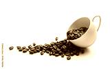Coffee beans in coffee cup isolated on white background