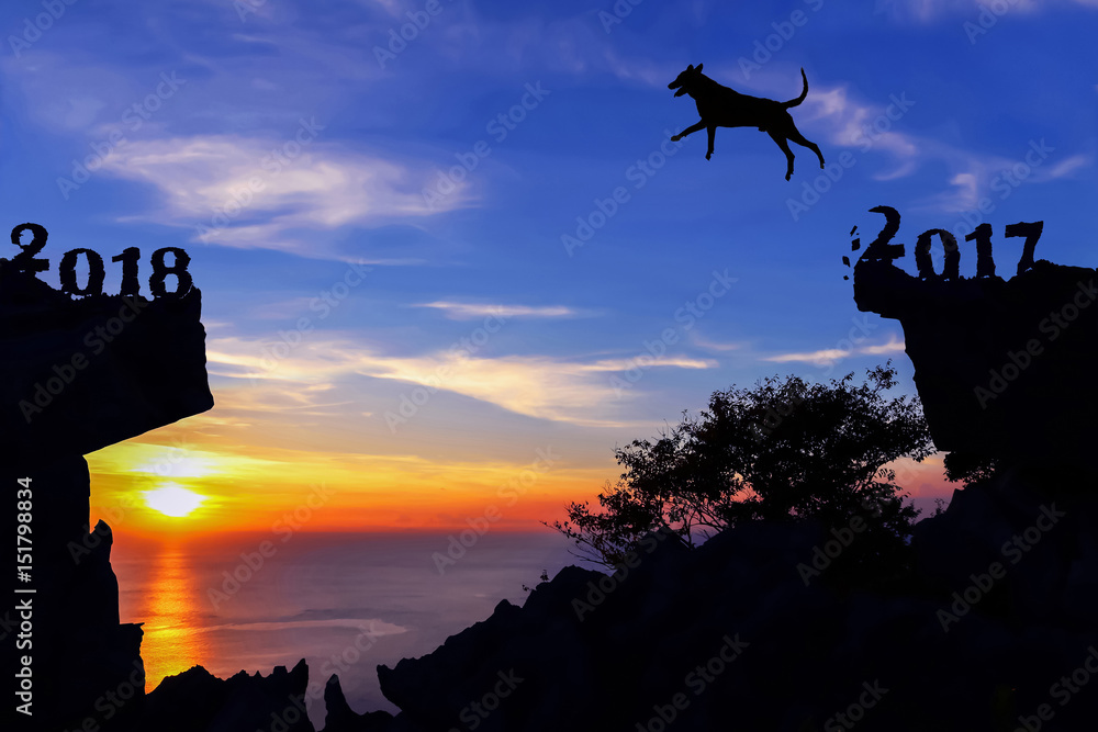 Years of the Dog 2018 concept with sunset sky on the mountain background.