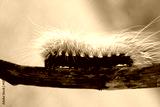 Black hairy caterpillars on branches in the garden.