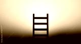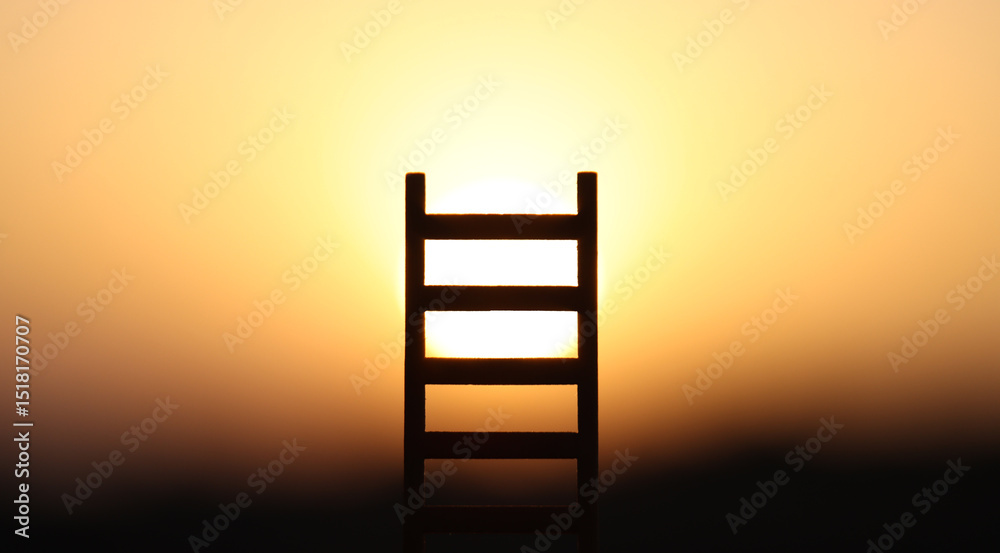 Ladder in nature in front of bright sunlight. Concept of freedom and success