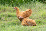 Pair of Buff Orpington Hens on Green Grass in Free-Range Setting