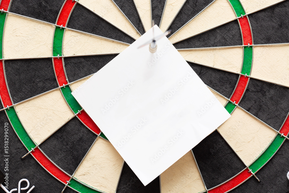 To do list business concept. Classic professional sisal dart board with a blank paper note