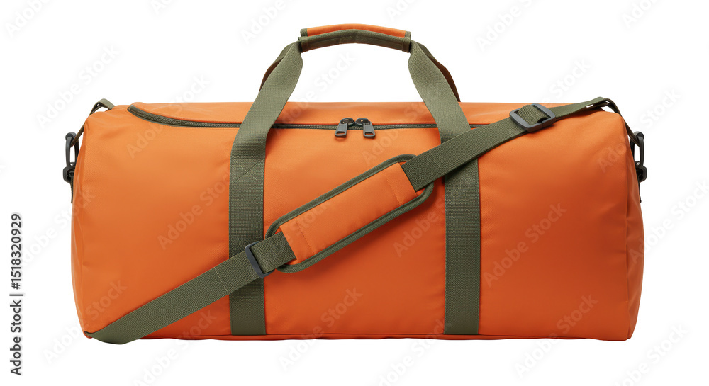 Isolated Orange Duffel Bag with Green Straps