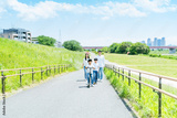 青空の下で遊ぶ家族