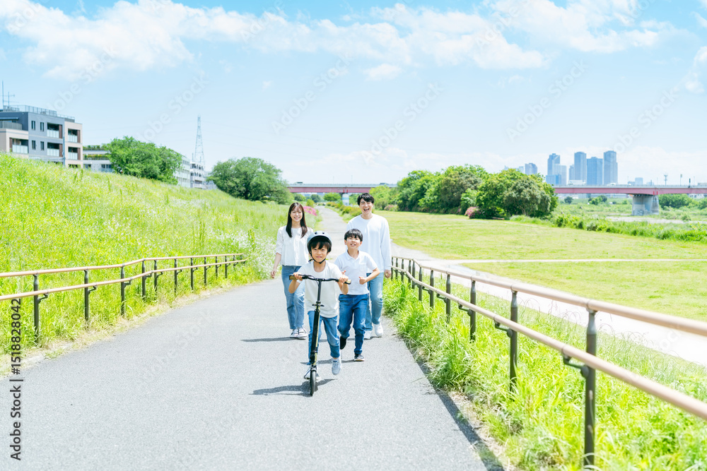 青空の下で遊ぶ家族