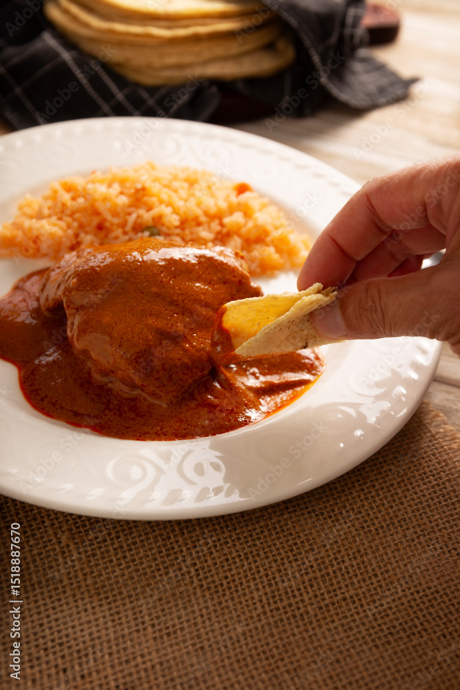 Pipian with Chicken, food from Mexico and other Latin American countries, chicken meat bathed in mole sauce made with pumpkin seeds, dried chili peppers and several other ingredients.