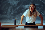 Angry Teacher Getting up from her Chair Looking Around. Frustrated professor feeling indignant promoting discipline in class