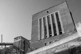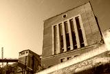 Abandoned industrial building with broken windows
