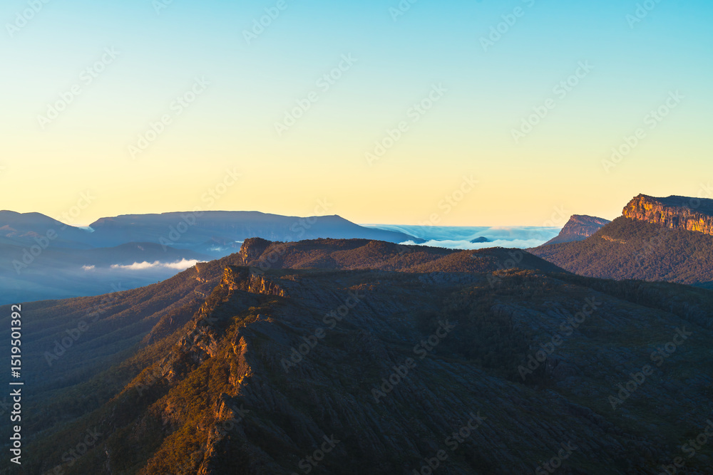 Grampians mountains peaks during sunrise viewed from Boroka Lookout, Grampians, Victoria