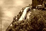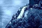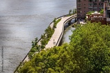 Aerial view of riverside walkway in NYC.