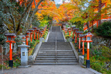 Kuramadera in a beautiful autumn scenery in Kyoto, Japan is a large temple complex spread across the side of Mt. Kurama