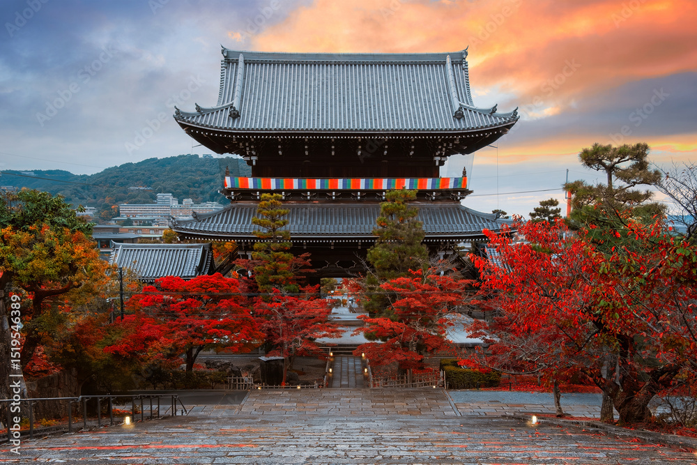 Kurodani or Konkai-Komyoji temple with beautiful autumn scenario in Kyoto, Japan